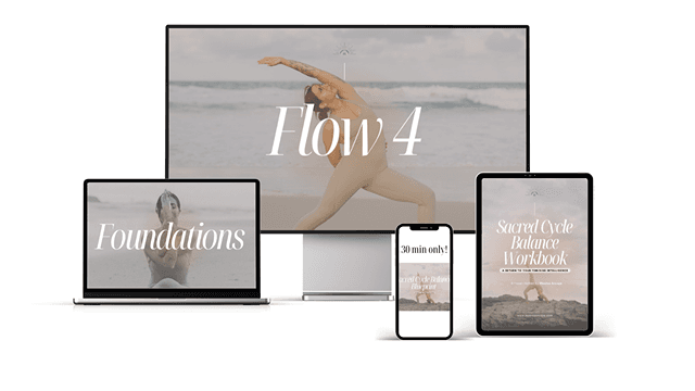 The Sacred Cycle Balance Blueprint offers four gentle 20–30 minute flows, one for each phase of your cycle. Learn to trust your body and connect deeply with your natural rhythm—so you can feel balanced, nourished, and fully in tune with yourself.